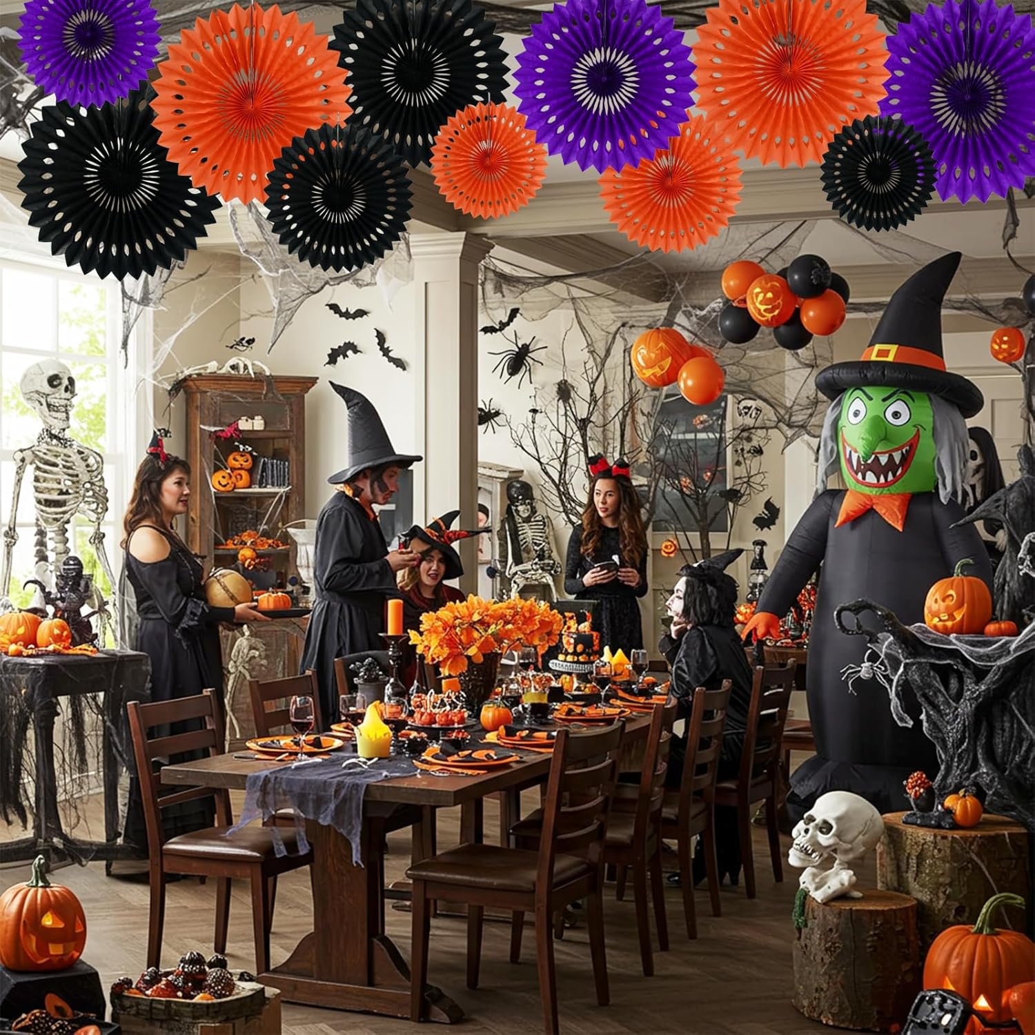 BEISHIDA Black Orange Purple Hanging Honeycomb Round Paper Fans Decoration Set for New Year Baby Shower Halloween Birthday Wedding Photo Booth Backdrops Anniversary Paper Party Supplies 11packs