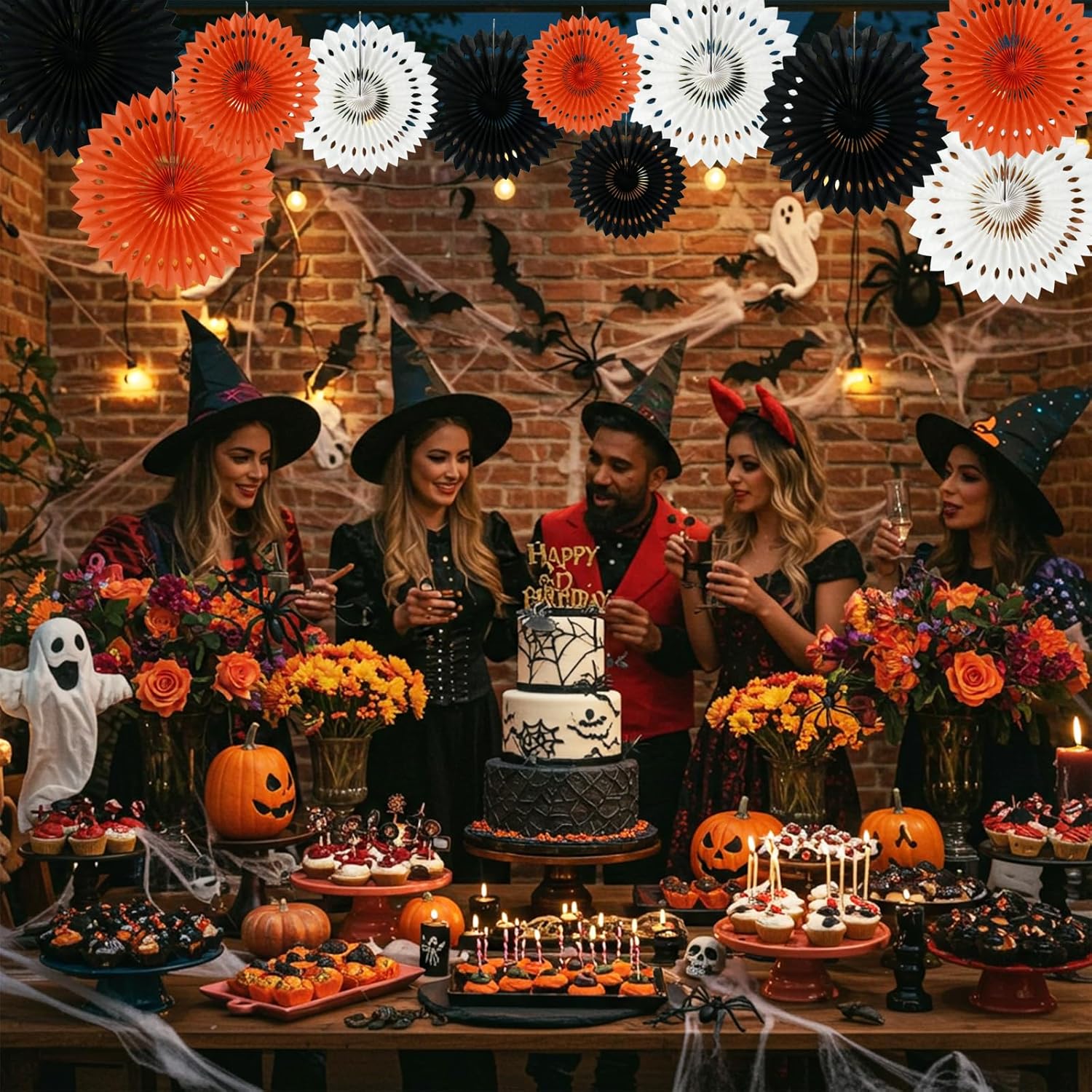 BEISHIDA Black Orange White Hanging Honeycomb Round Paper Fans Decoration Set for New Year Baby Shower Halloween Birthday Wedding Photo Booth Backdrops Anniversary Paper Party Supplies 11packs