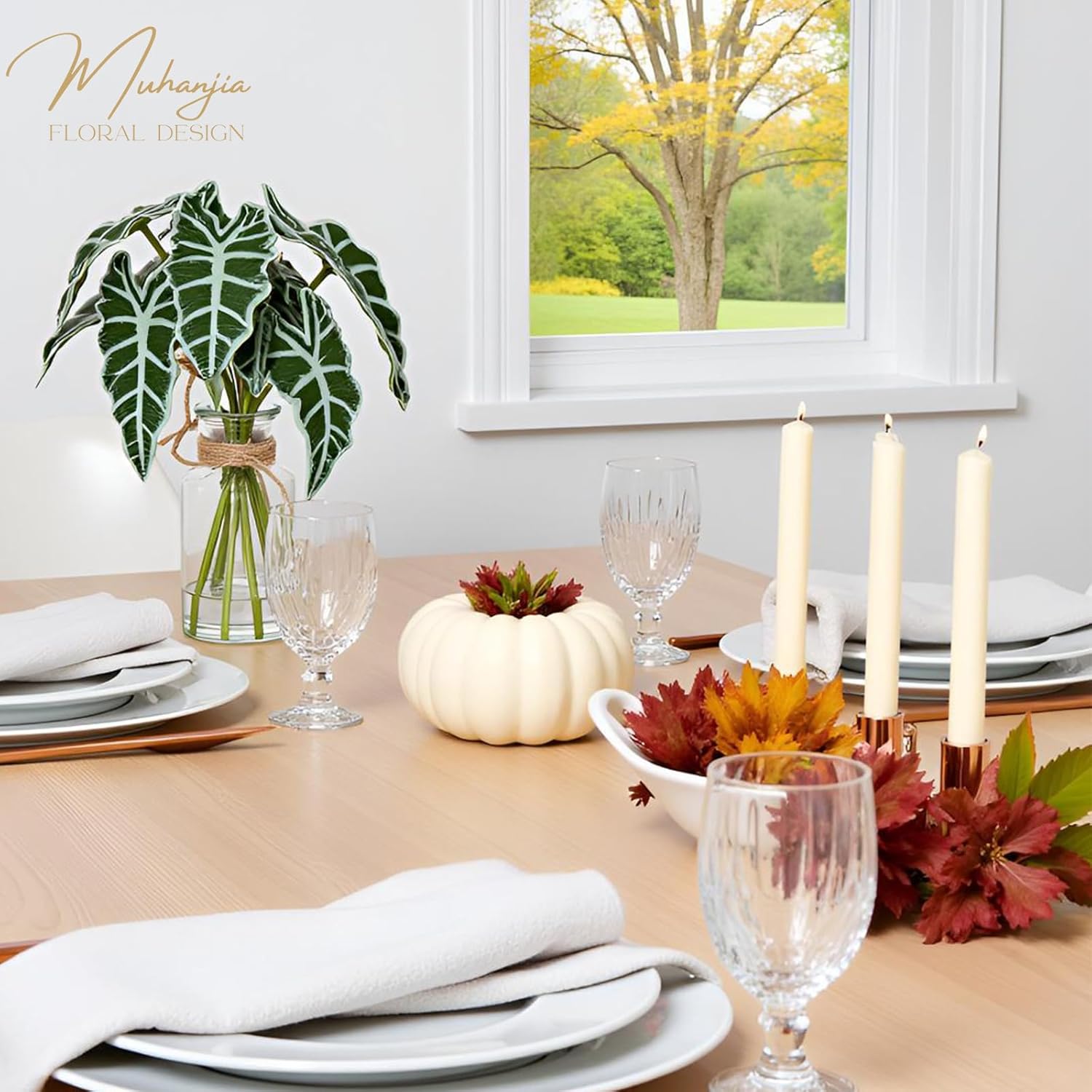 - 【Multi-purpose Home Decor】Whether you're hosting a rustic-themed event or aiming for a nature-inspired decor style, our faux alocasia leaf arrangement is the perfect foliage decoration to create stunning table centerpieces. It is suitable for decorating the kitchen, bathroom, bookshelf, cabinet, work desk, coffee table, dining table, party venue, wedding venue or farmhouse. Additionally, it makes an excellent gift for housewarming parties and Christmas celebrations.