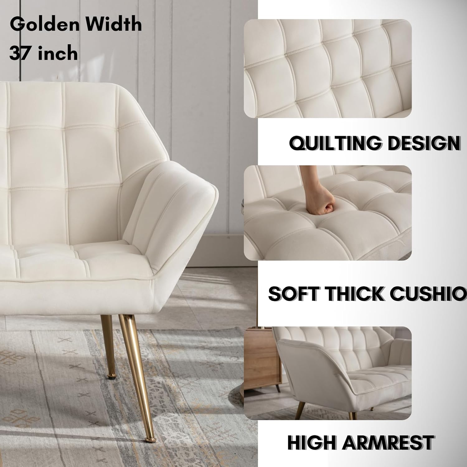 48”Small Loveseat Sofa, Modern Velvet Upholstered Mini Couch 2-Seater Fluffy Love Seat with Quilting Backs and Metal Legs for Small Space Living Room, Bedroom, Beige