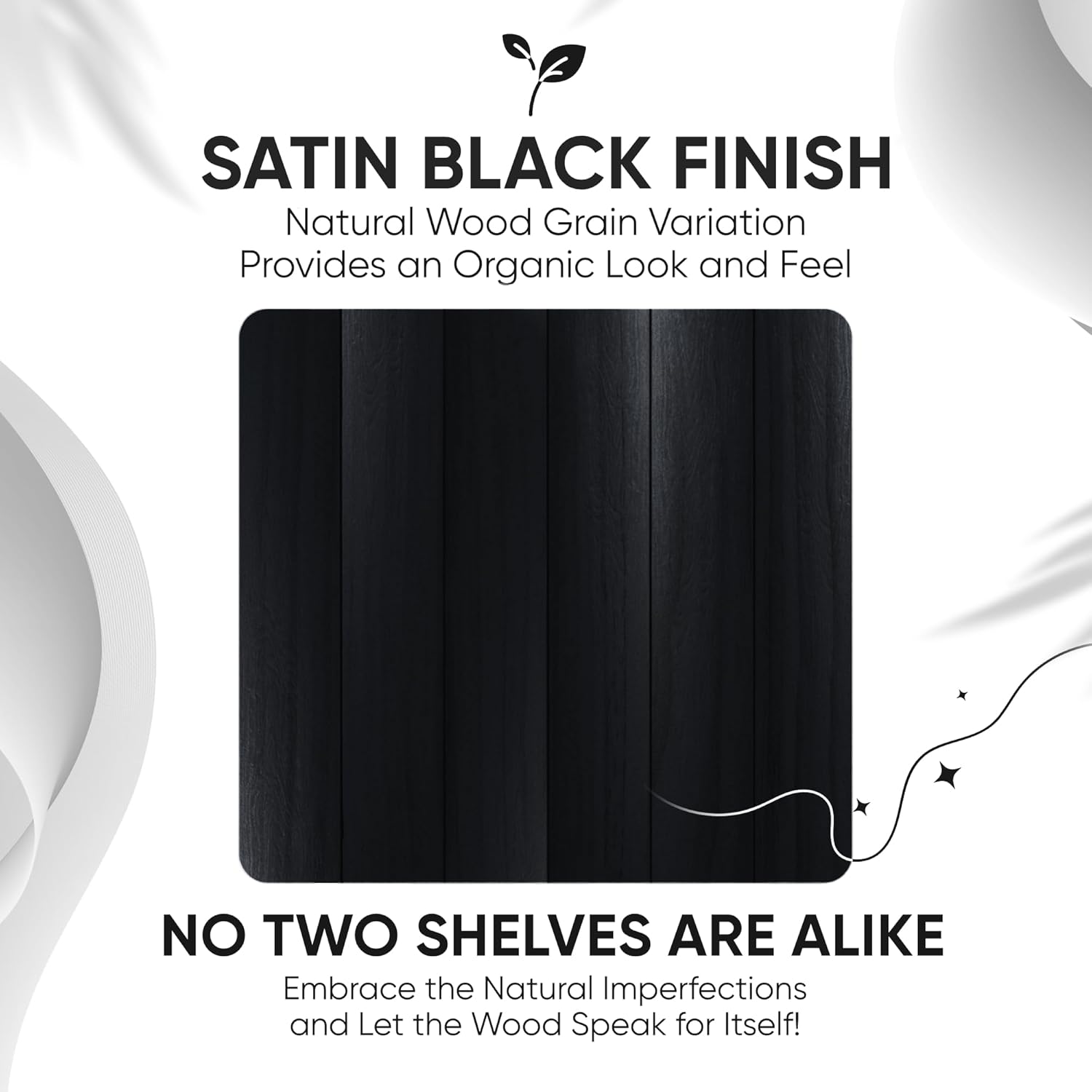 Homeforia Black Floating Shelves 24 inch, High End Solid Real Wood 24inch Bathroom Floating Shelf for Wall Mounted, Black Wooden 24in Floating Shelves, Heavy Duty Bracket, 24 X 6.5 X 1.75 in, Set of 3