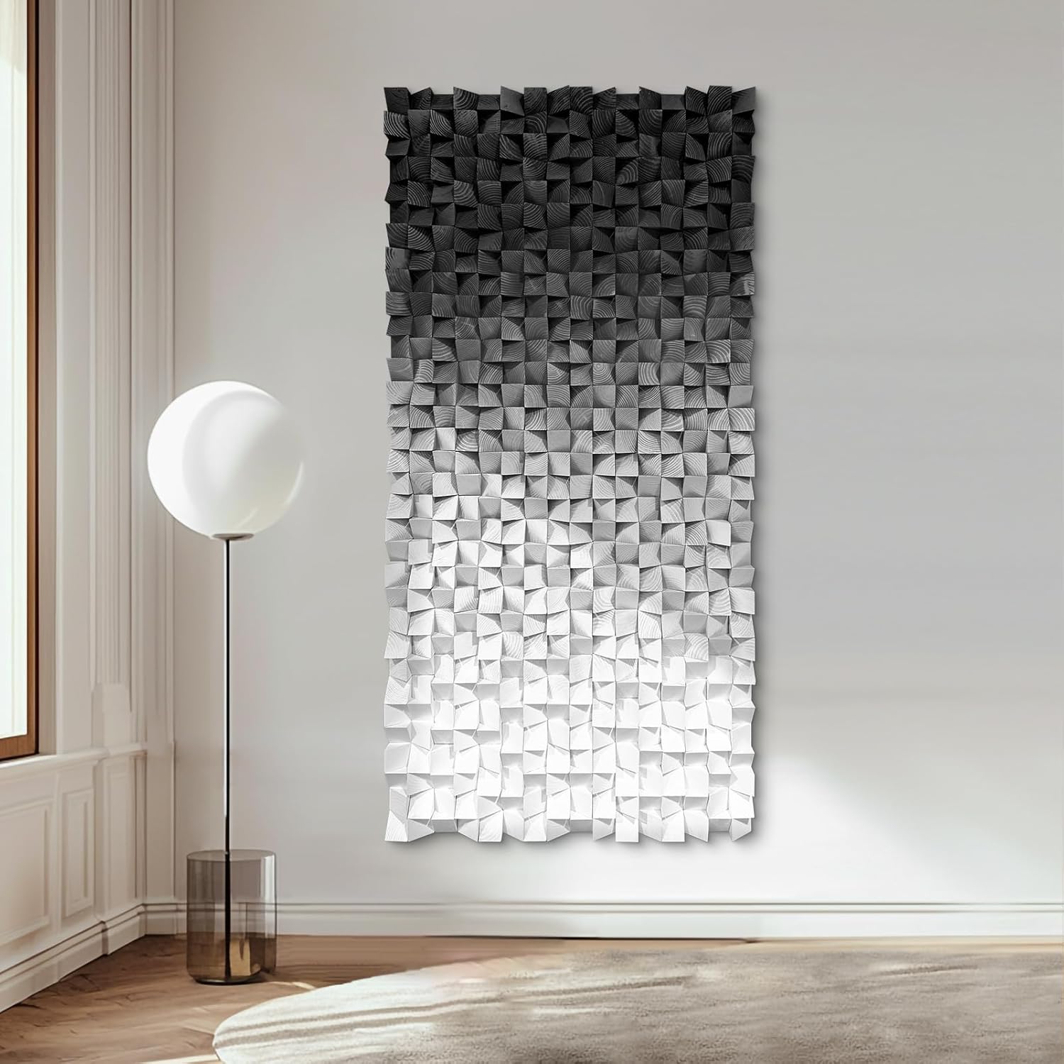 LIUZEYUE - Wooden Block Stereoscopic Painting Geometric Modeling Wall Decoration 3D Wooden Artwork Living Room Bedroom Background Wall Office Decoration Black and White Gradient 39.4 x 78.7 inches