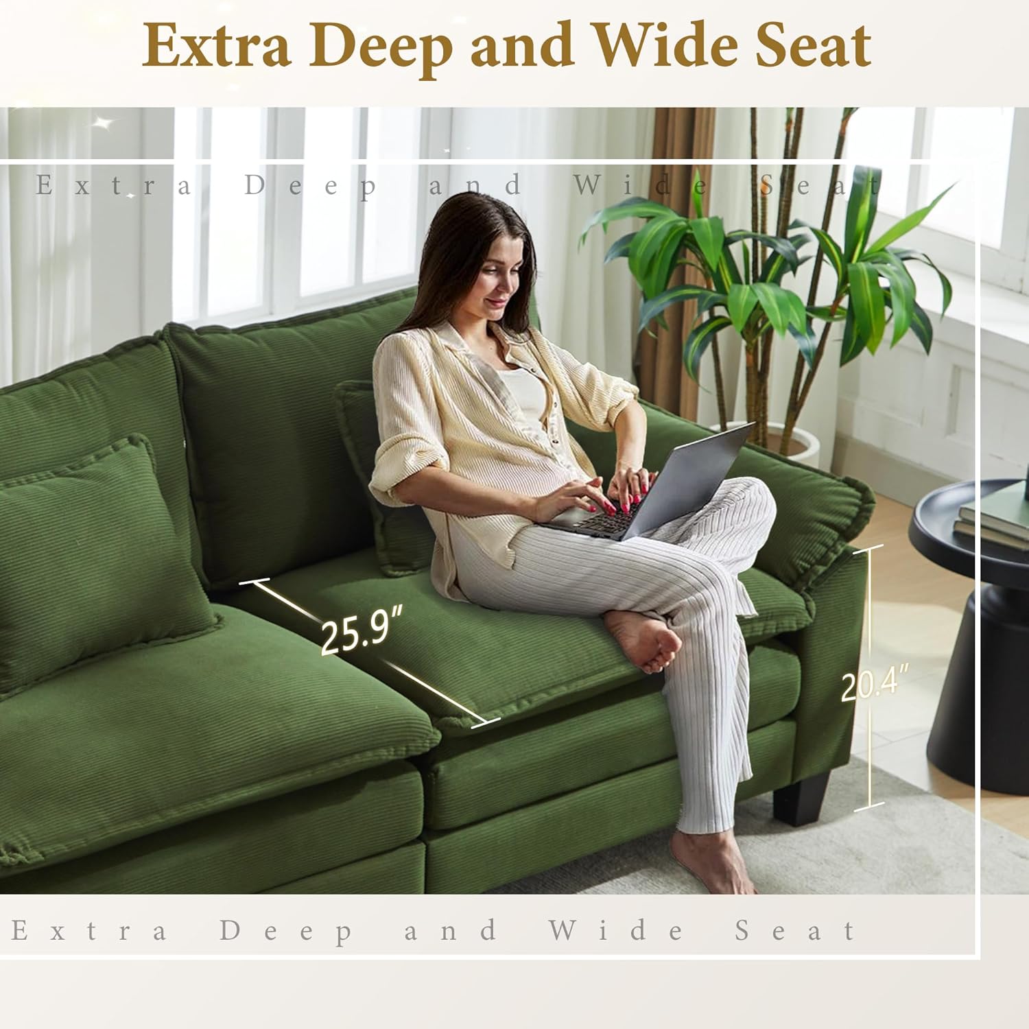 - Soft and Skin Friendly: This sofa is made of corduroy fabric, which is soft and gentle to the skin.The cushions are super soft, sitting on them is like being wrapped in cotton, soft and comfortable!