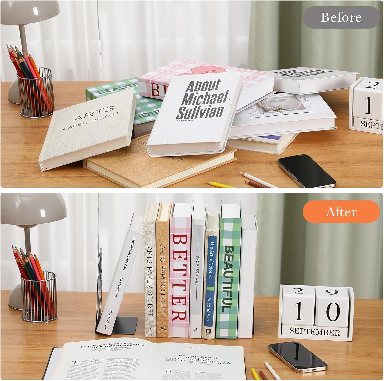 - Sturdy and Durable: the bookshelf organization is made of thick gauge steel and a metal structure made using advanced stamping technology; It is not easy to bend and break, and your books are neatly and upright; The anti static coating extends the service life of the bookends and is durable