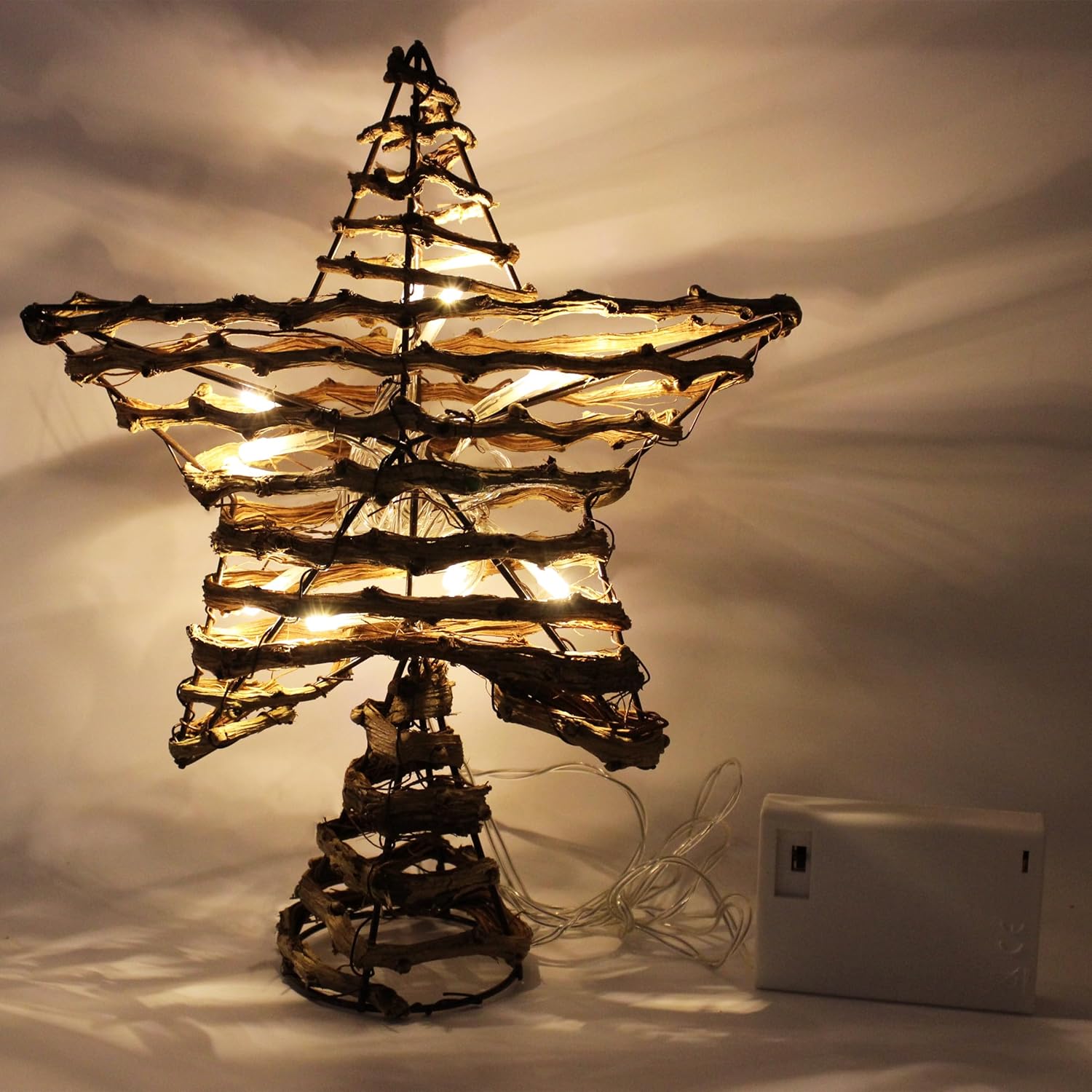 - RUSTIC DESIGN: Handcrafted tree topper made from natural rattan branches arranged in a stunning star pattern, perfect for farmhouse-style Christmas decor