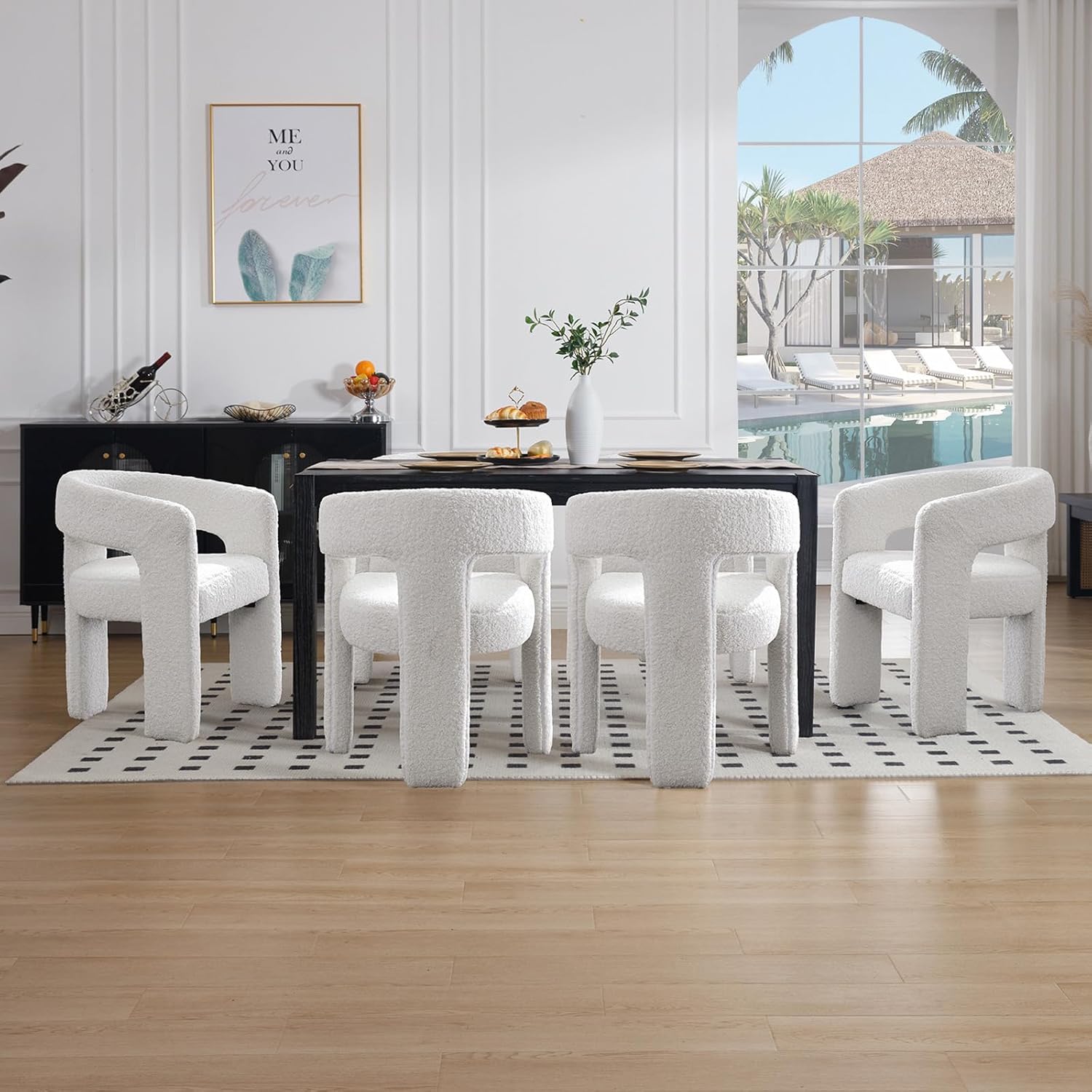 - FLUFFY BOUCLE COVERED: This dining chair features a soft, fuzzy faux fur upholstery that fully covers the seat cushion, offering a luxurious and cozy feel with every sit. The plush material adds both comfort and style, making it an inviting addition to any dining or living space