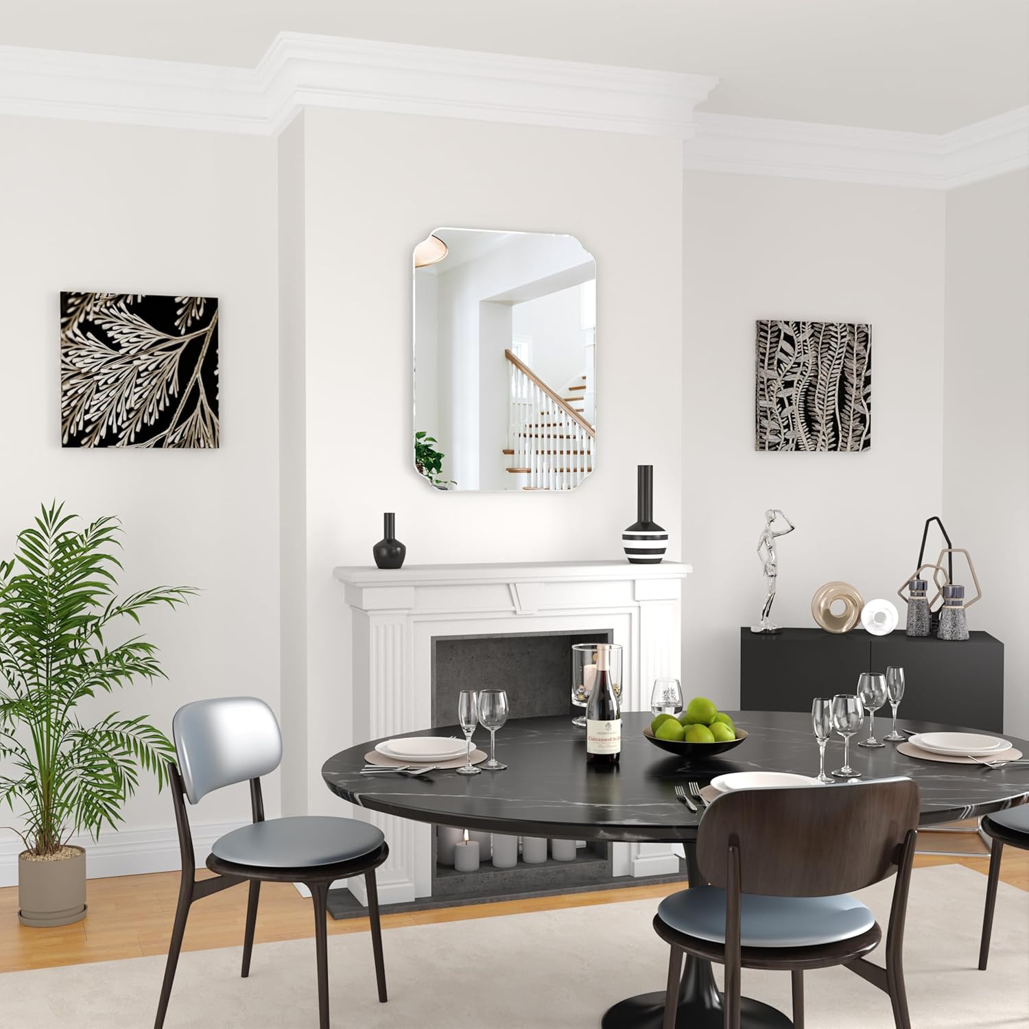 - FLEXIBLE MULTI-SCENE APPLICATION - Designed for hassle-free horizontal or vertical wall mounting, the beveled mirror edge complements diverse spaces—bathrooms, hallways, bedrooms, and living rooms—to create personalized decor effortlessly.