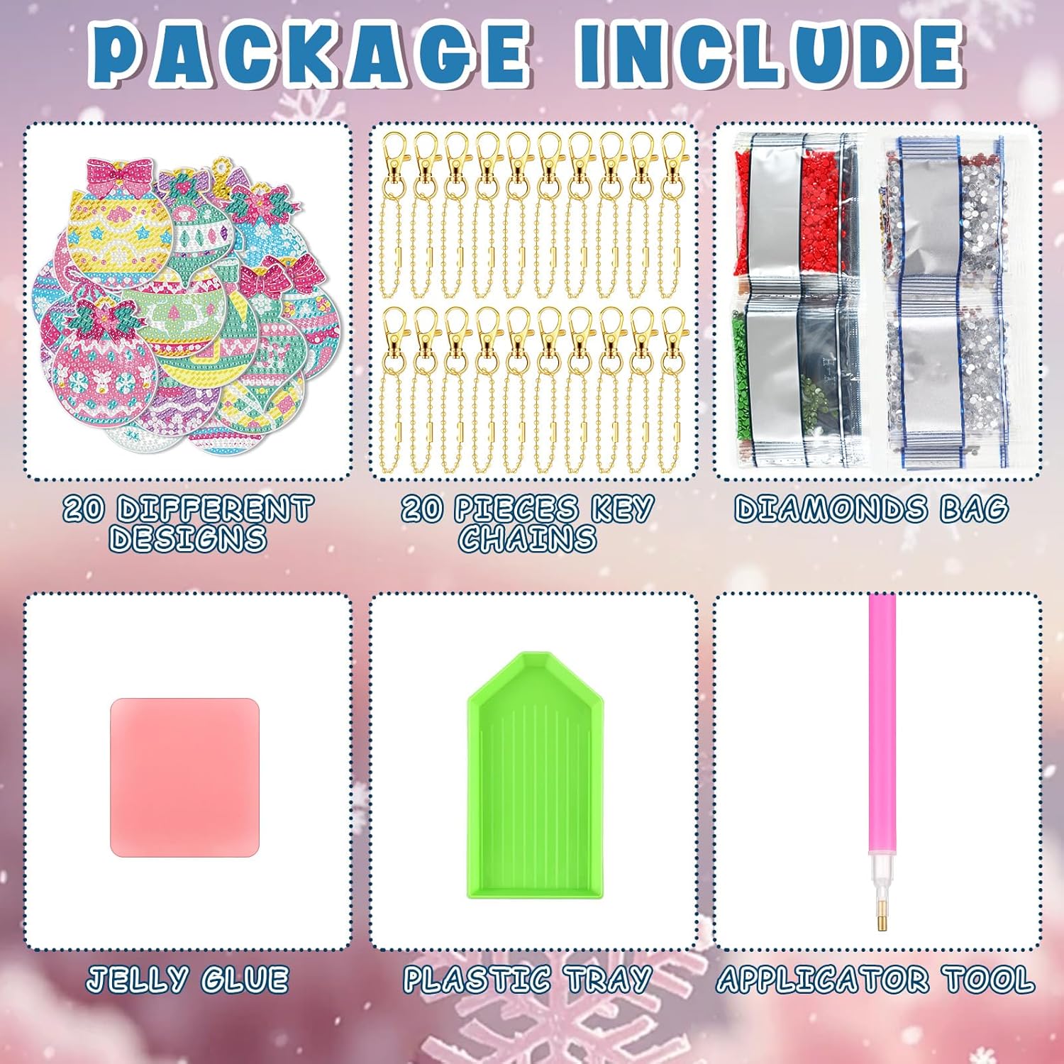 - Easy to Use: our Christmas delicate diamond keychains allow you to hang your keychains securely on your bag or purse, so you don't have to worry about losing them; In addition, trays allow you to arrange diamonds in order, while glue and drill pens help you stick diamonds in the right place