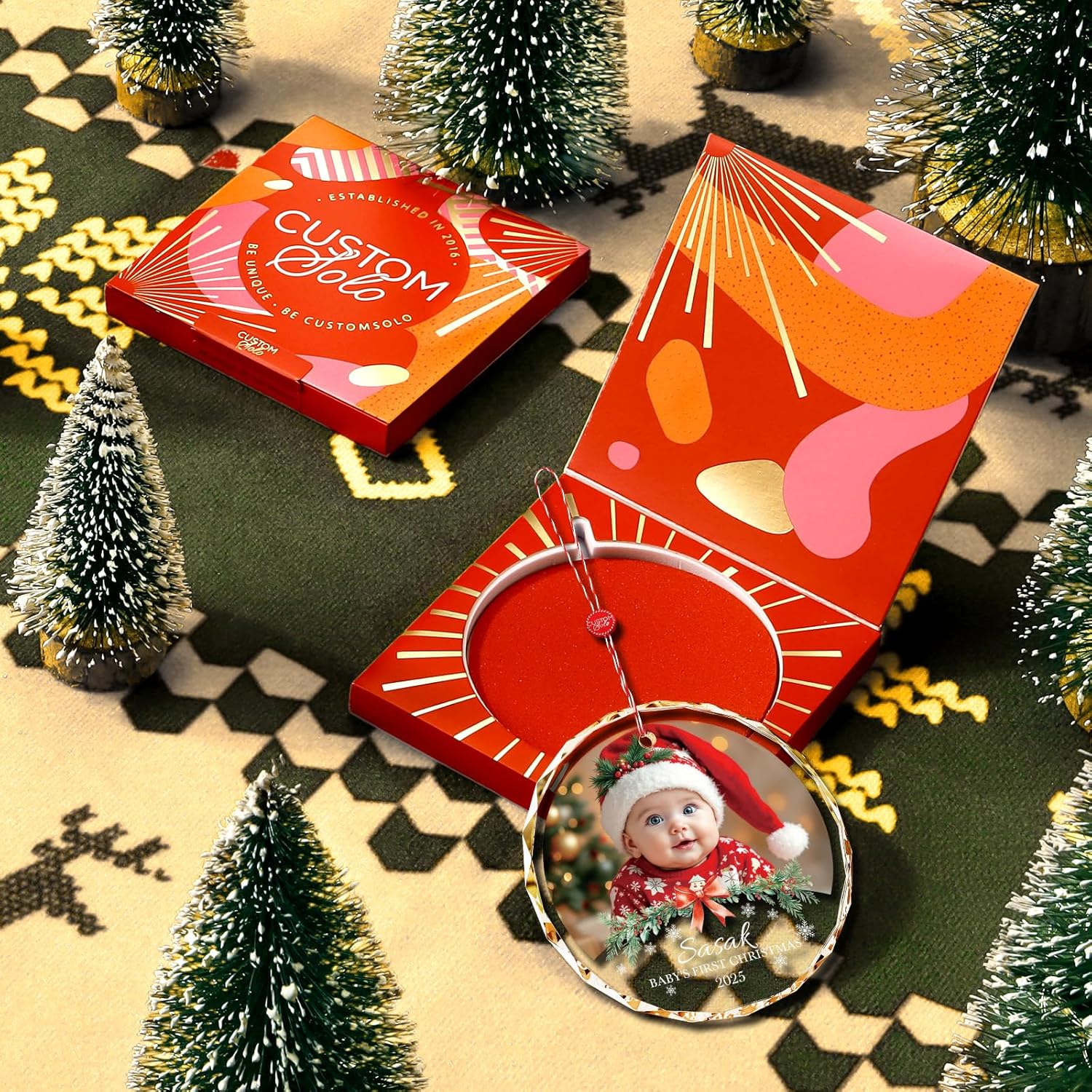 - 👶️ Personalized Christmas Ornaments for Baby 👶️ Fully customize your personalized baby first christmas ornaments! Add your baby’s photo, text, and date to make this personalized baby ornament one-of-a-kind. This babys first christmas ornament 2025 girl boy captures your little one's precious moments in stunning crystal clarity. Preserve the magic of this unforgettable baby 's first Christmas for a lifetime