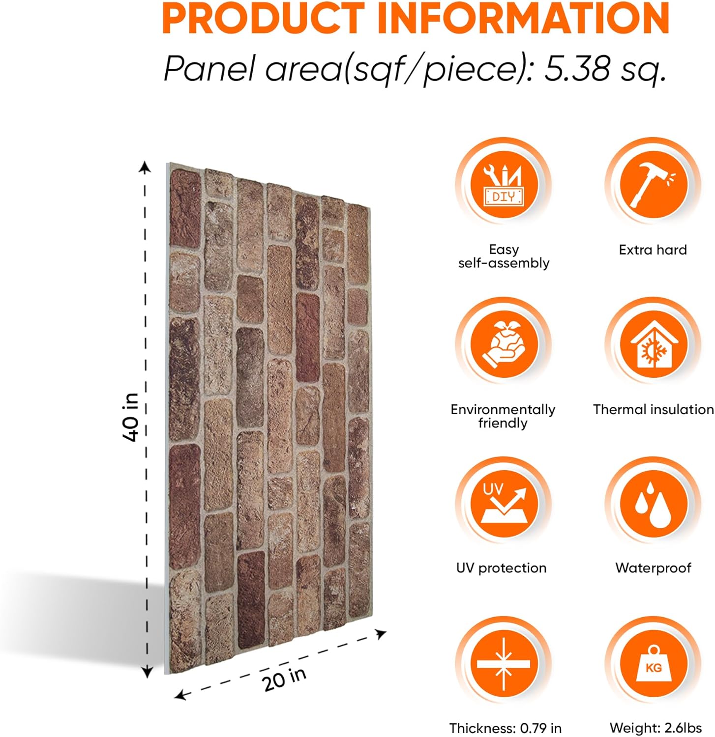 ZODEKOR 3D Wall Panels Brick Effect - Cladding, Stone Look, Styrofoam Facing for Living Room, Kitchen, Bathroom, Balcony, Bedroom, Back of Counter | Farmhouse Style (3 x Panels) - Covers 53 sq ft